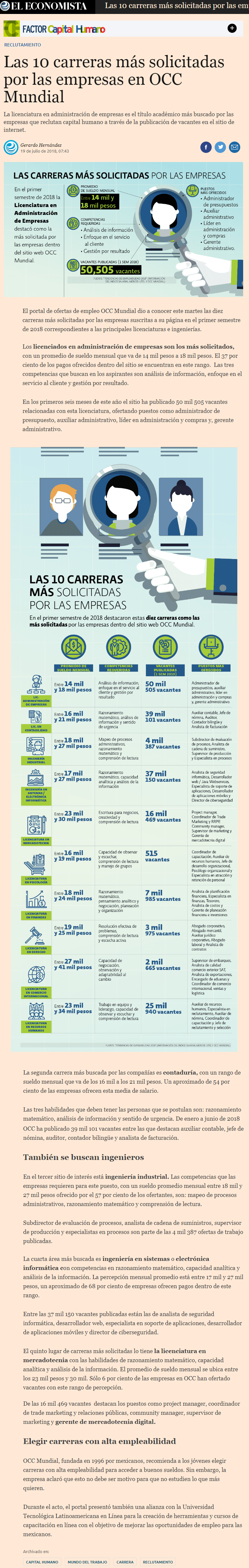 Conoce más sobre las 10 carreras más solicitadas por las empresas en El Economista.
