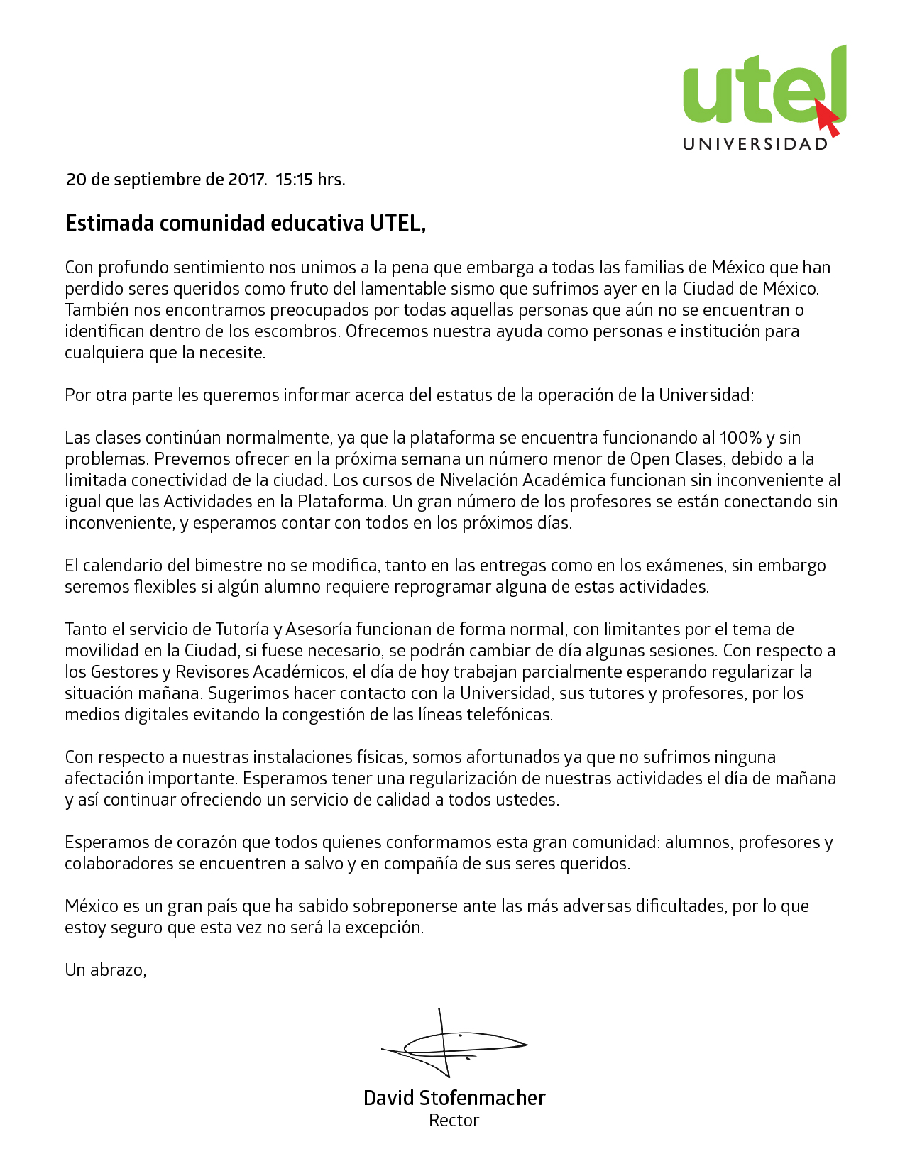 El Secretario de Turismo de México y Padrino de Generación UTEL, Mtro. Enrique de la Madrid compartió con los egresados algunos