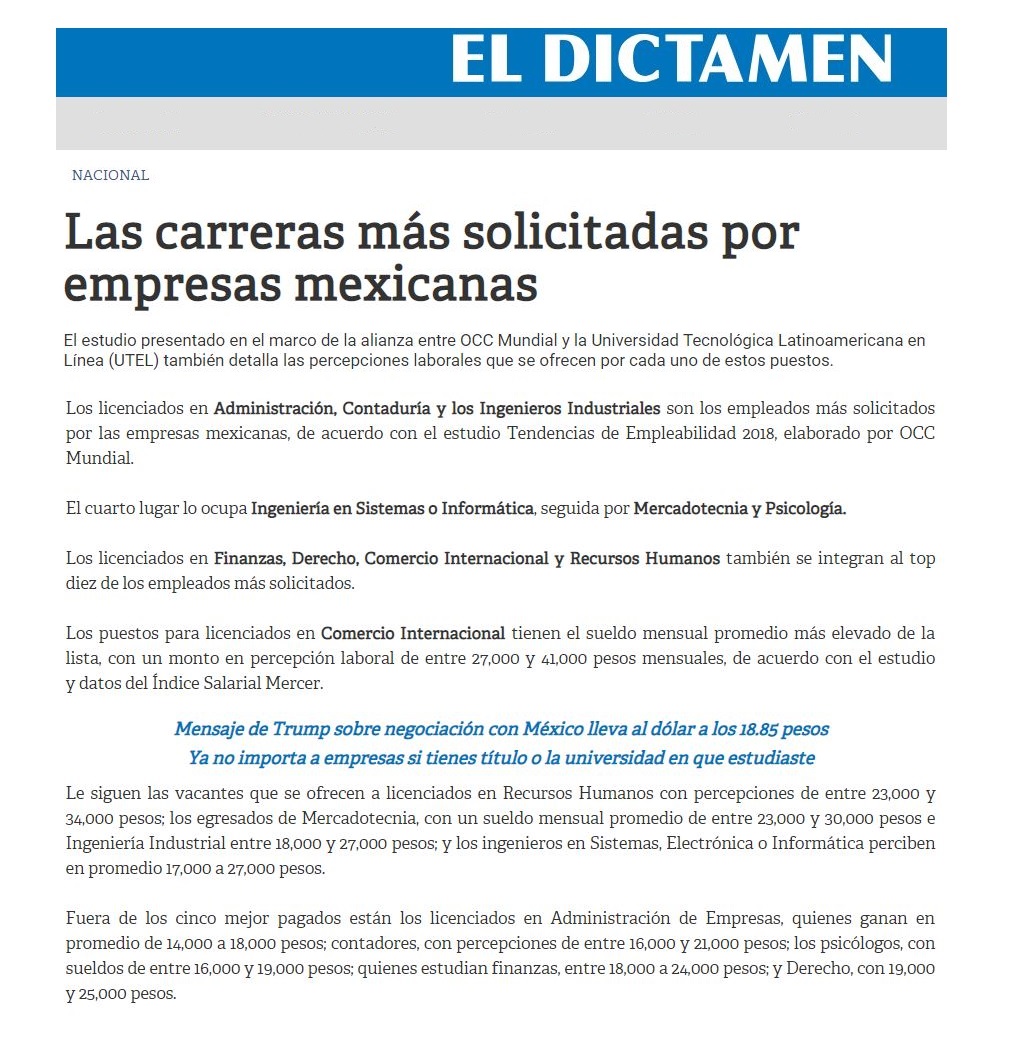 El Dictamen | Las carreras más solicitadas por empresas mexicanas