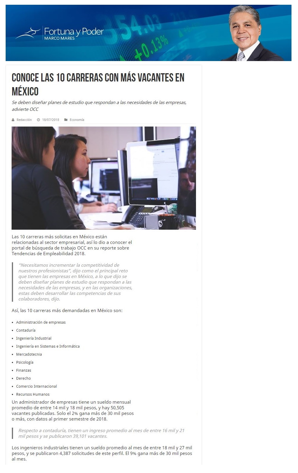 Fortuna y Poder | Conoce las 10 carreras con más vacantes en México