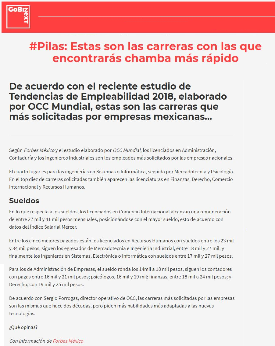 GOBINEXT | Pilas: Estas son las carreras con las que encontrarás chamba más rápido
