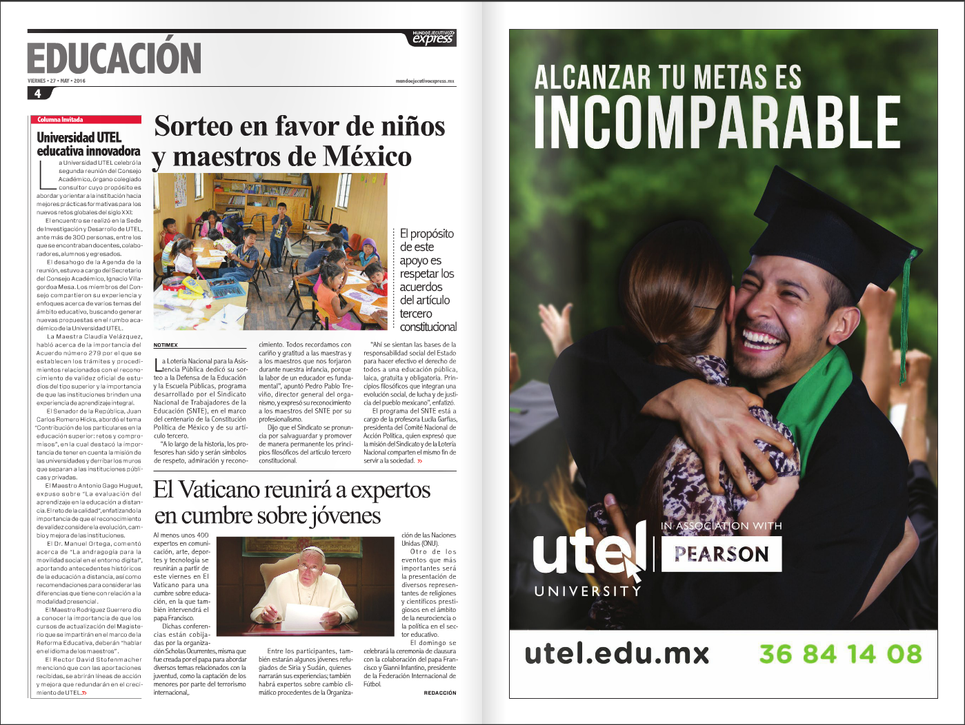 Mundo Ejecutivo Express, presentó el pasado viernes 27 de mayo de 2016 en su edición impresa, una columna acerca del más reciente encuentro del Consejo Universitario UTEL.