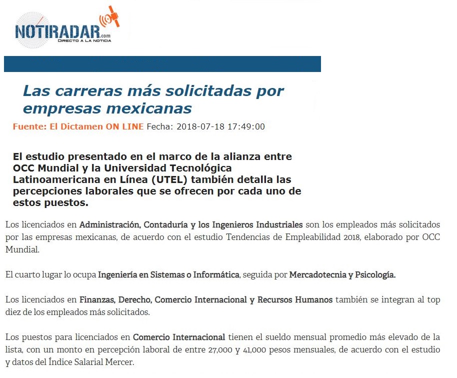NOTIRADAR | Las carreras más solicitadas por empresas mexicanas