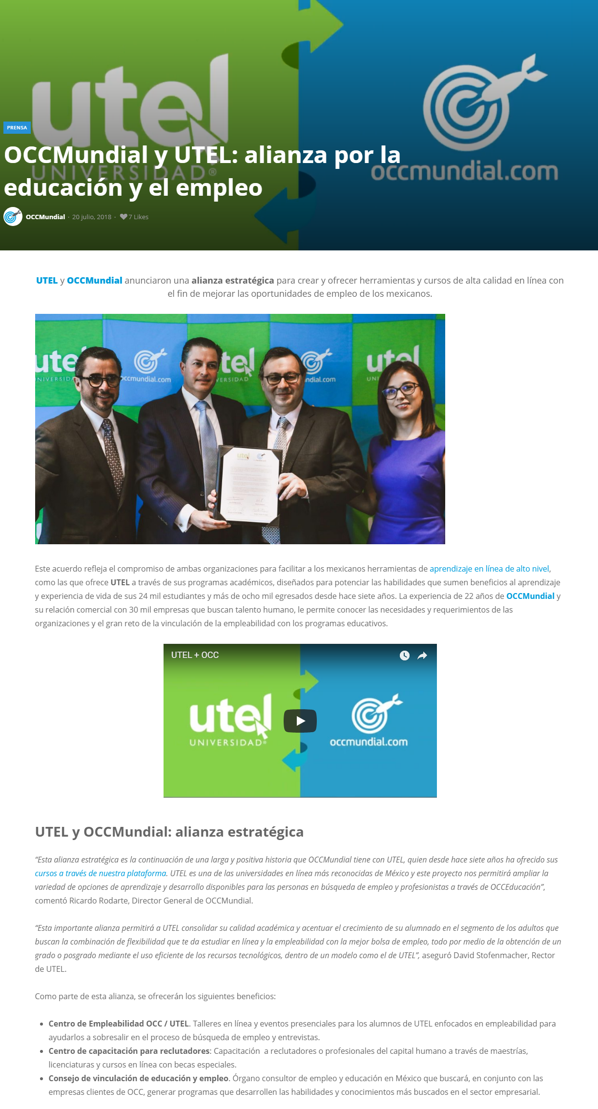 UTEL y OCCMundial anunciaron una alianza estratégica para crear y ofrecer herramientas y cursos de alta calidad en línea con el fin de mejorar las oportunidades de empleo de los mexicanos.