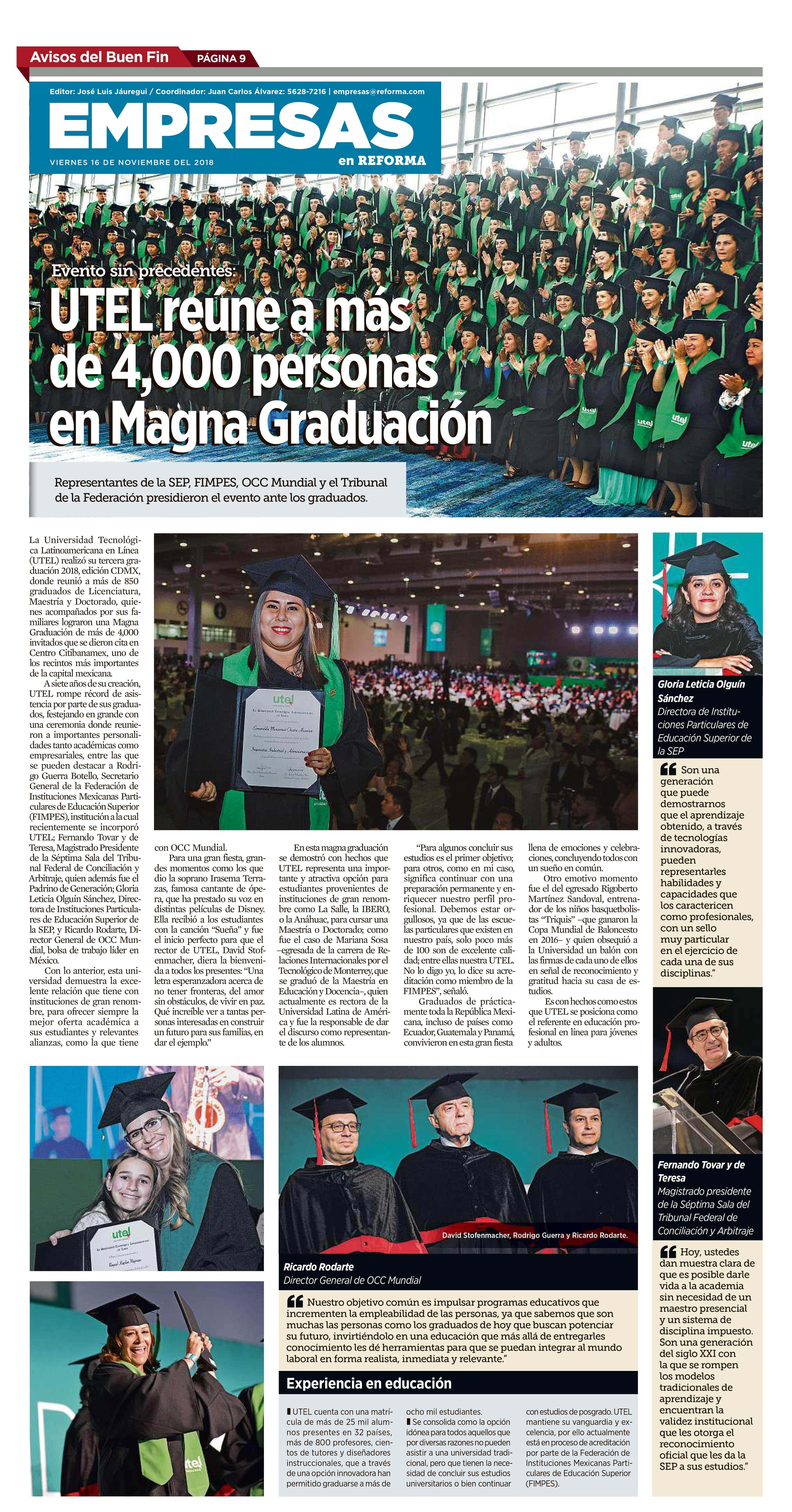 Encuentra más detalles de lo ocurrido el pasado sábado 10 de noviembre, durante la Magna Graduación, en la sección Empresas del periódico REFORMA.