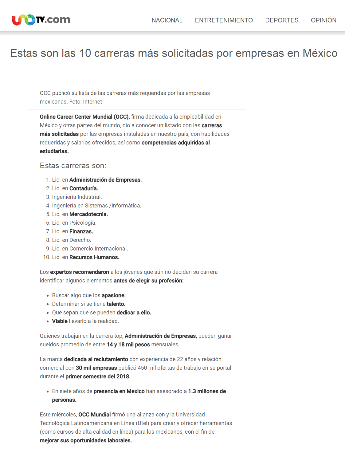 UNOTV: Estas son las 10 carreras más solicitadas por empresas en México